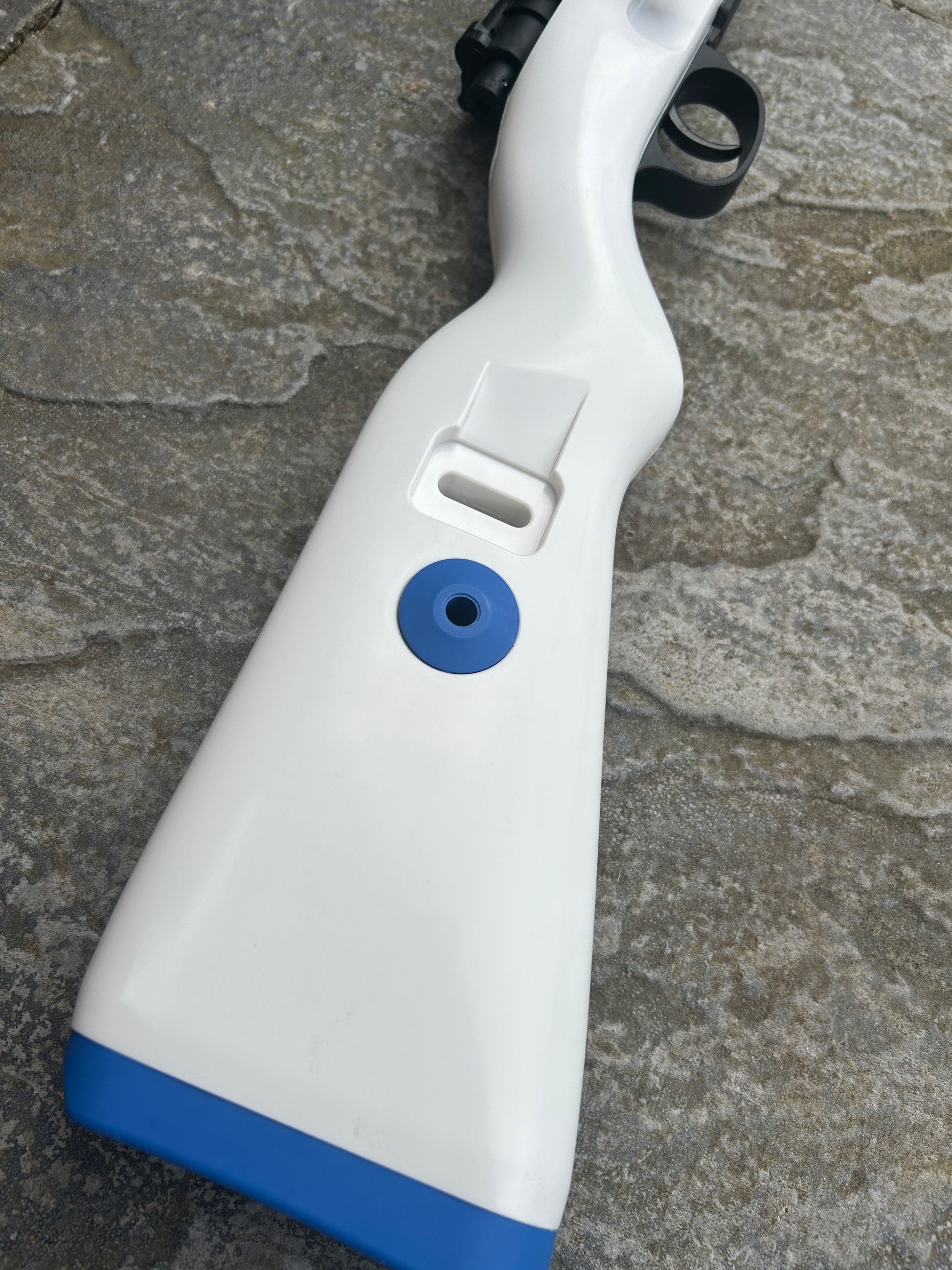 Construction is ABS and nylon. Bolt is removable, meaning you can take it into conventions and roleplay events with the firing capacity removed. Please note this blaster is 3D printed in some areas and not all parts will fit together smoothly, leaving some small gaps and surfaces may have light “burns” or scuffing from the manufacturing process.