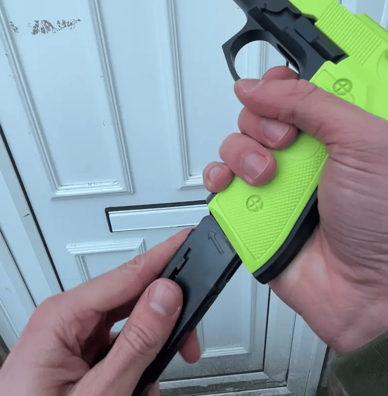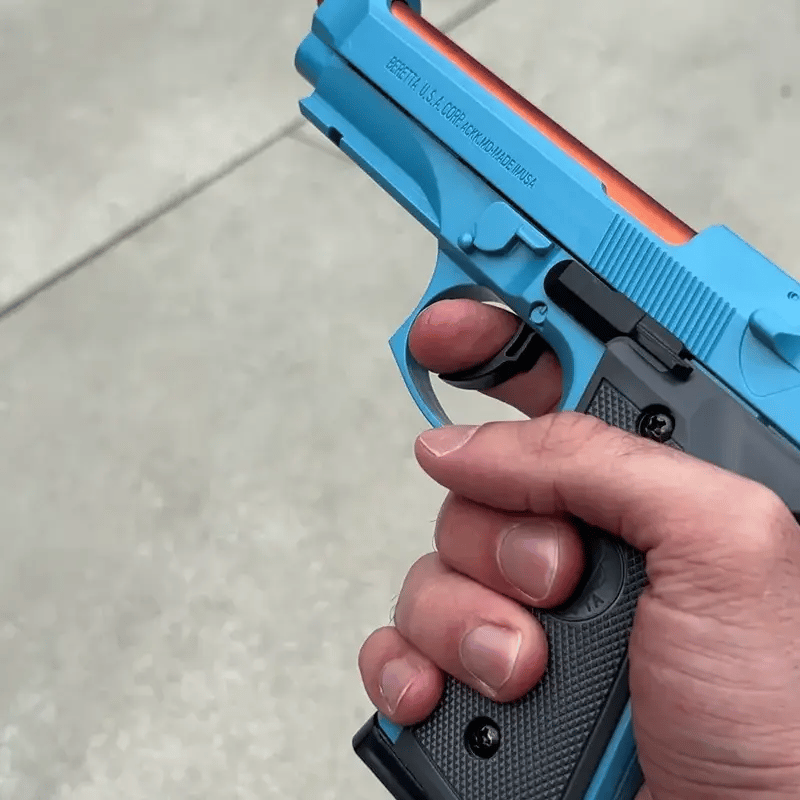 Just like a real M9, the gun features semiautomatic firing with realistic blowback and shell ejection on each shot
