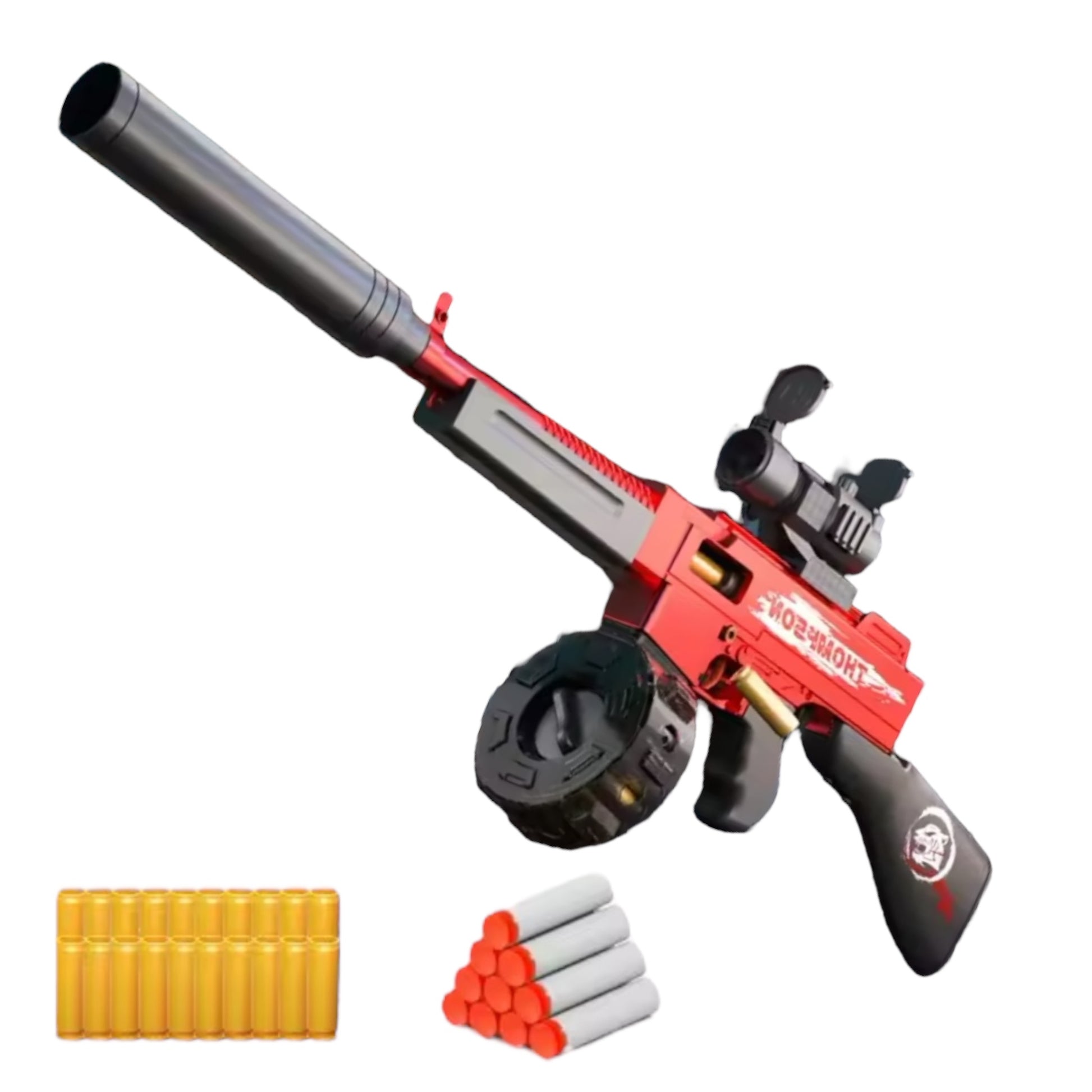 Based on the classic Tommy gun, this electric, battery operated dart blaster is one of our latest models! Equipped with a drum and stick mag, included battery/charger, detachable suppressor and optic, it is able to fit a variety of combat scenarios and blast your opponents with ease.