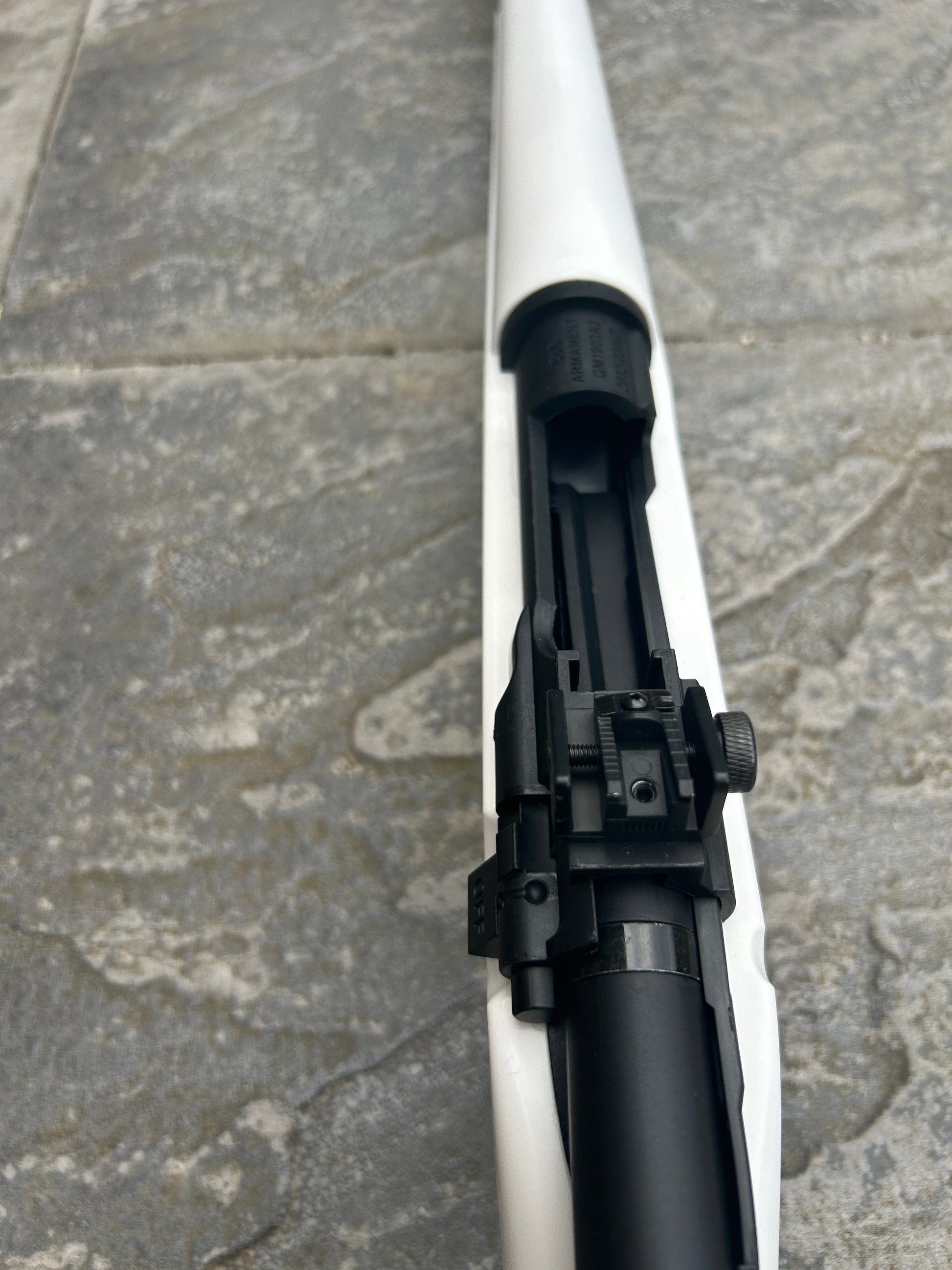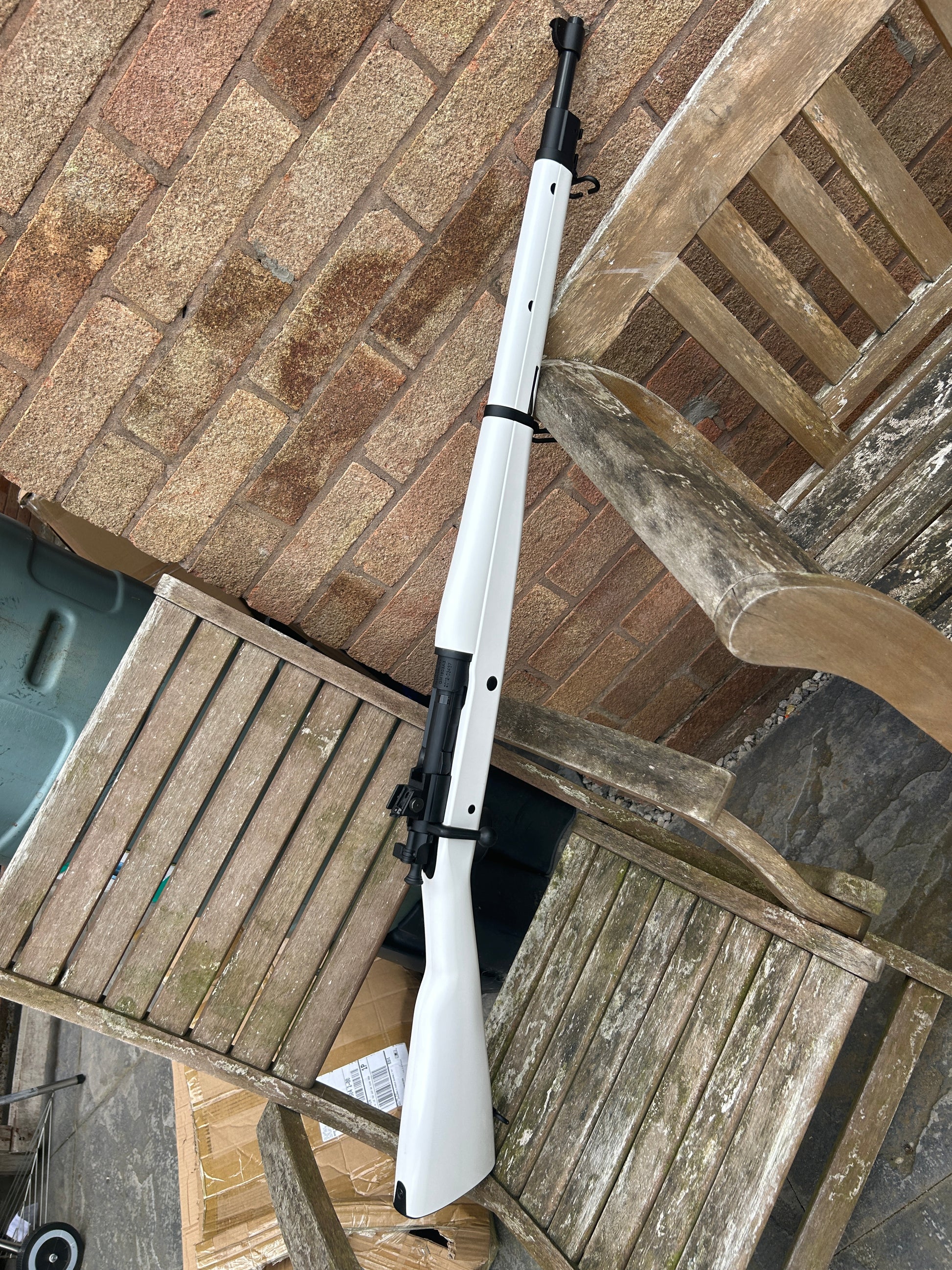Loading with authentic stripper clips and a weighty nylon construction, the rifle shoots with some power and accuracy, making it the perfect indoor/outdoor plinker.